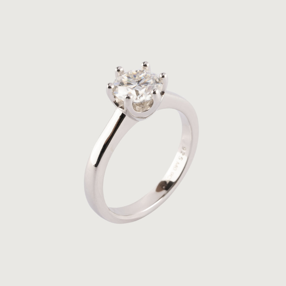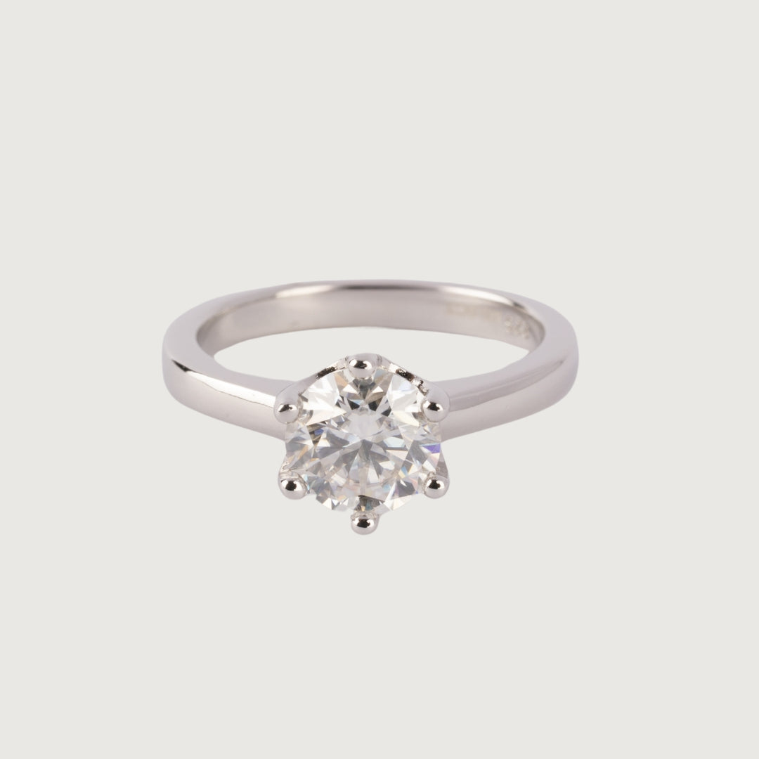 Expertly crafted, this Solitaire Engagement Ring boasts a dazzling 1.00CT Moissanite stone set in a 925 sterling silver six-prong band. Perfect for symbolizing your eternal love and commitment. Discover the beauty of Moissanite.