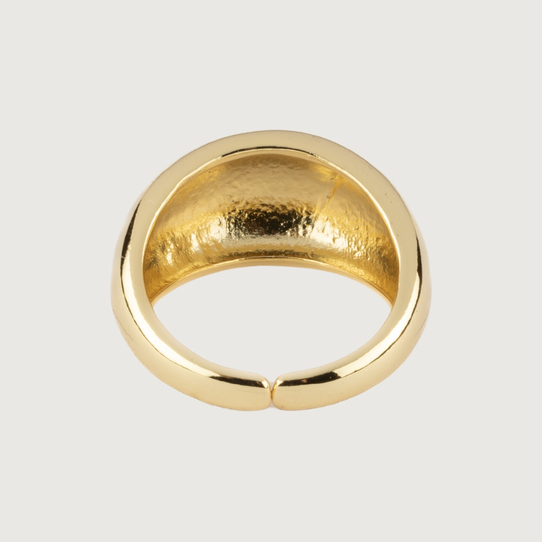 This Golden Dome Ring is stunning and adjustable, making it a versatile piece for any outfit. Enhance and elevate your style with this elegant and versatile Golden Dome Ring.