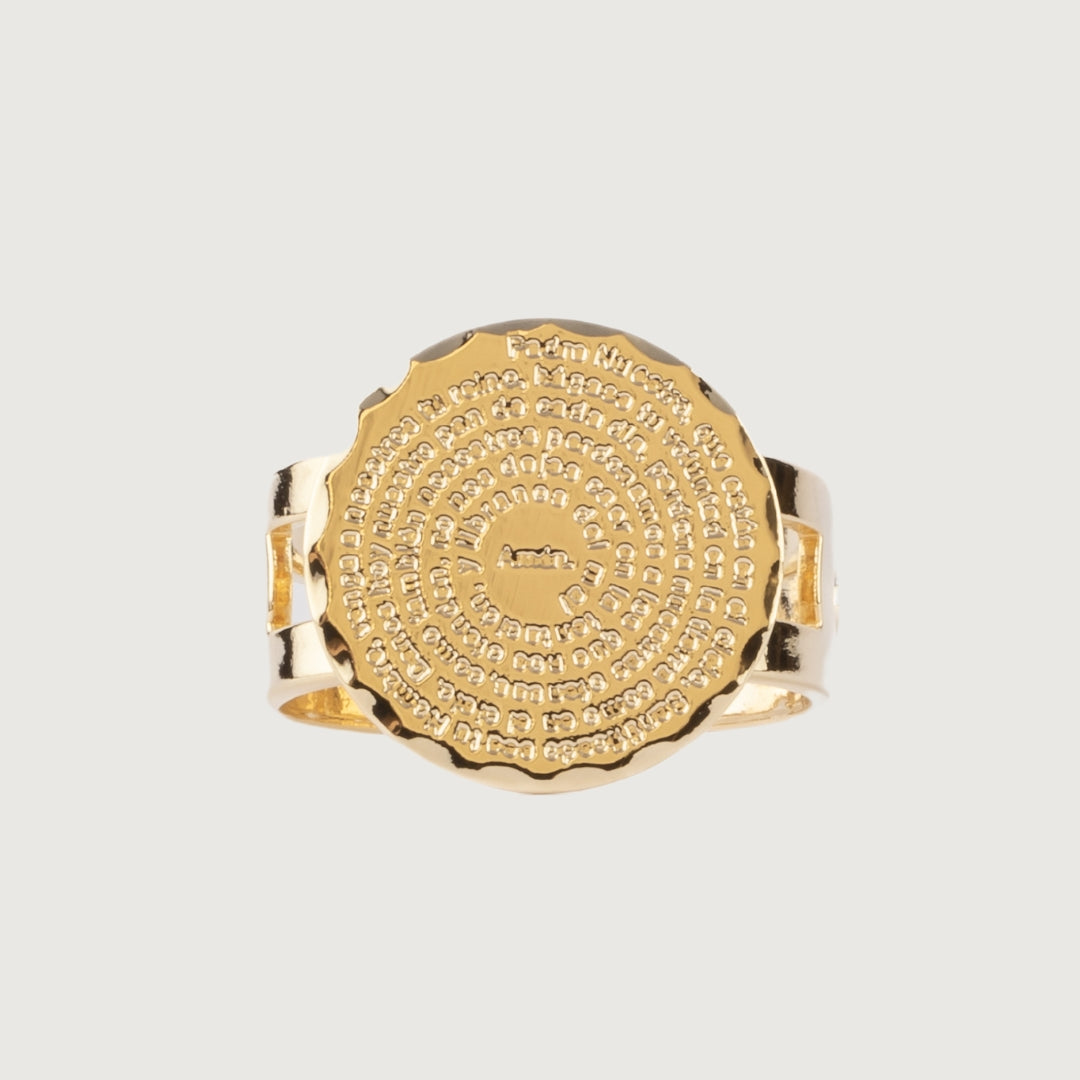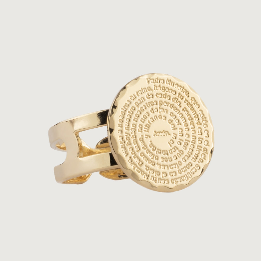 The Golden Round "Padre Nuestro" (Our Father) Religious ring is a sacred and elegant accessory to remind us of the power and beauty of our faith. This ring is a timeless symbol of our connection to God.