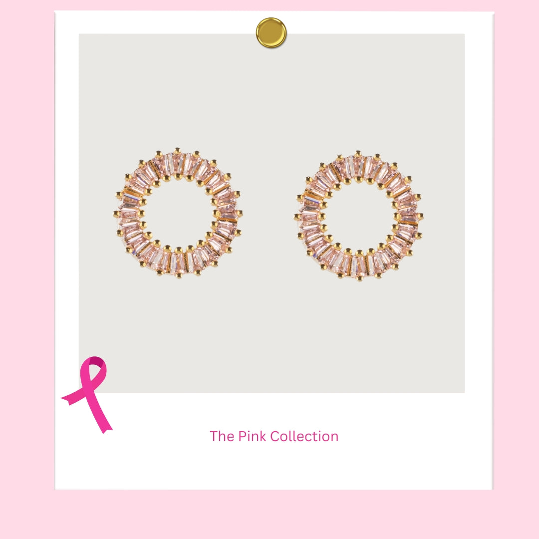 These stunning Pink Halo Golden Earrings feature a halo design, encrusted with delicate crystals for a subtle yet glamorous look. Each piece of The Pink Collection features pink accents to honor the courage of individuals who have faced breast cancer and to remind us of the importance of raising awareness.
