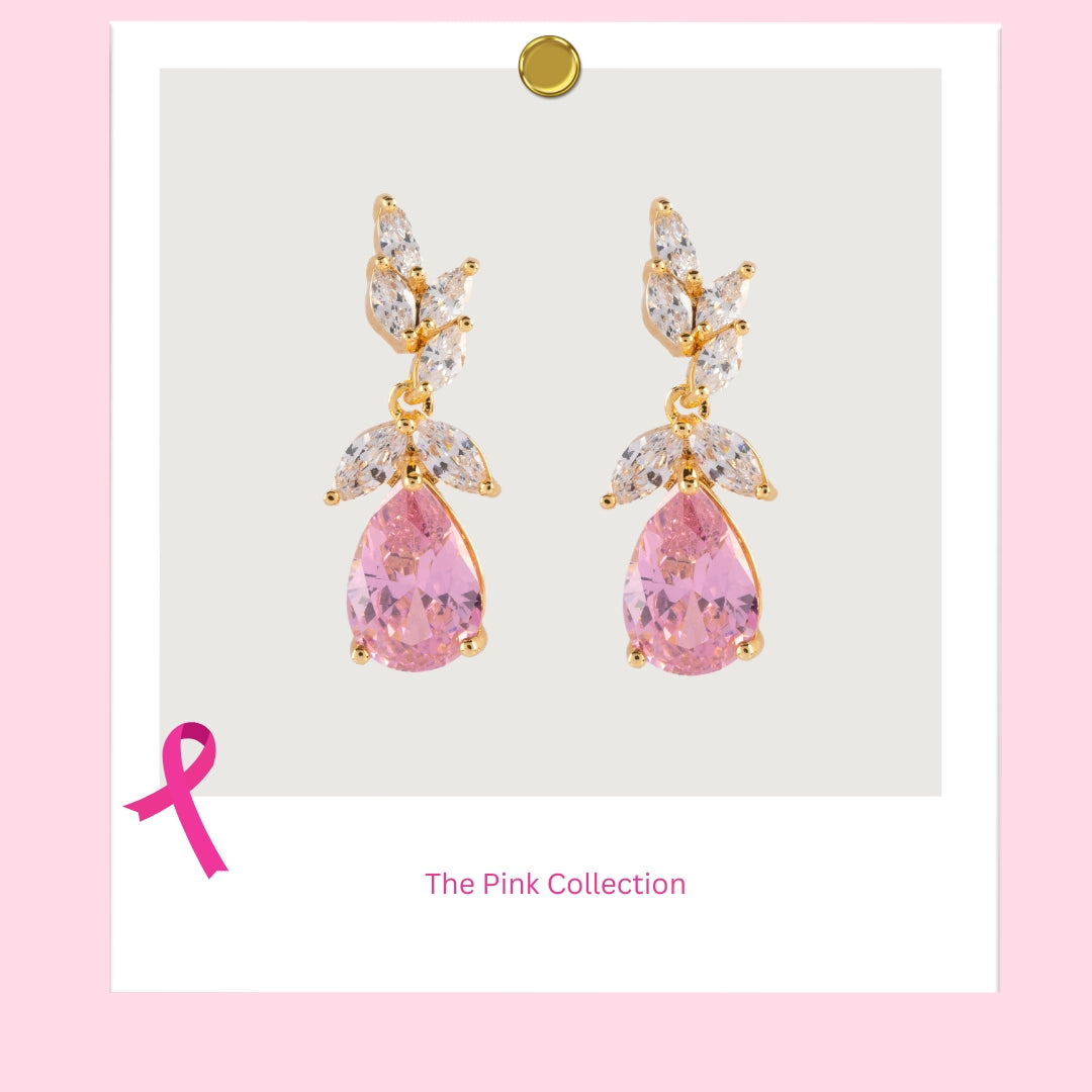 The Pink Rose Drop Earrings add a touch of femininity and elegance, while the shining cubic zirconia stones bring an eye-catching sparkle. Each piece of The Pink Collection features pink accents to honor the courage of individuals who have faced breast cancer and to remind us of the importance of raising awareness.