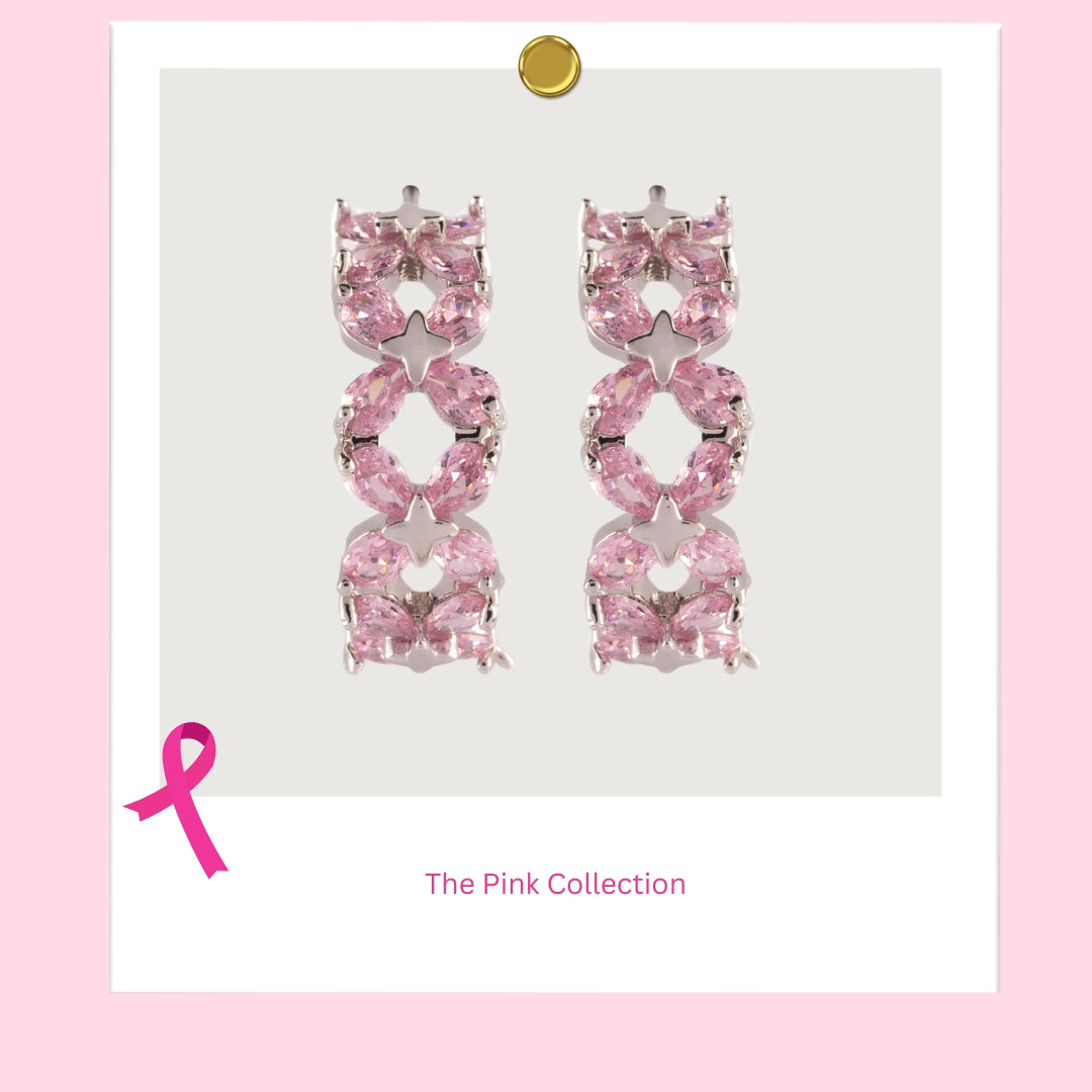 Introducing the Pink Sparkle Cascade Earrings, featuring stunning pink zirconia hoops in a beautiful cascade design. Each piece of The Pink Collection features pink accents to honor the courage of individuals who have faced breast cancer and to remind us of the importance of raising awareness.
